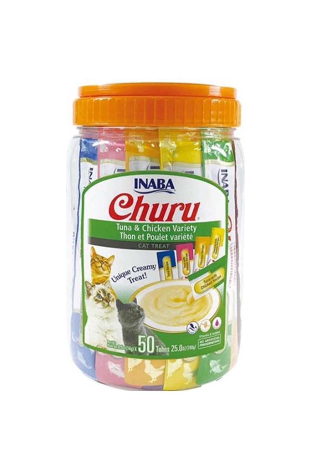 CIAO Churu Cream Ton Balıklı ve Tavuklu Sıvı Kedi Ödül Maması 14gr (50'li)+Saklama Kabı HEDİYE!